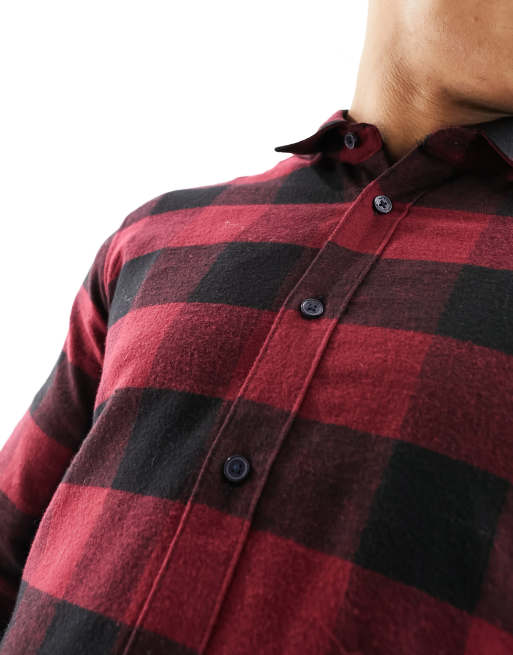 Camisa negra con clearance cuadros rojos