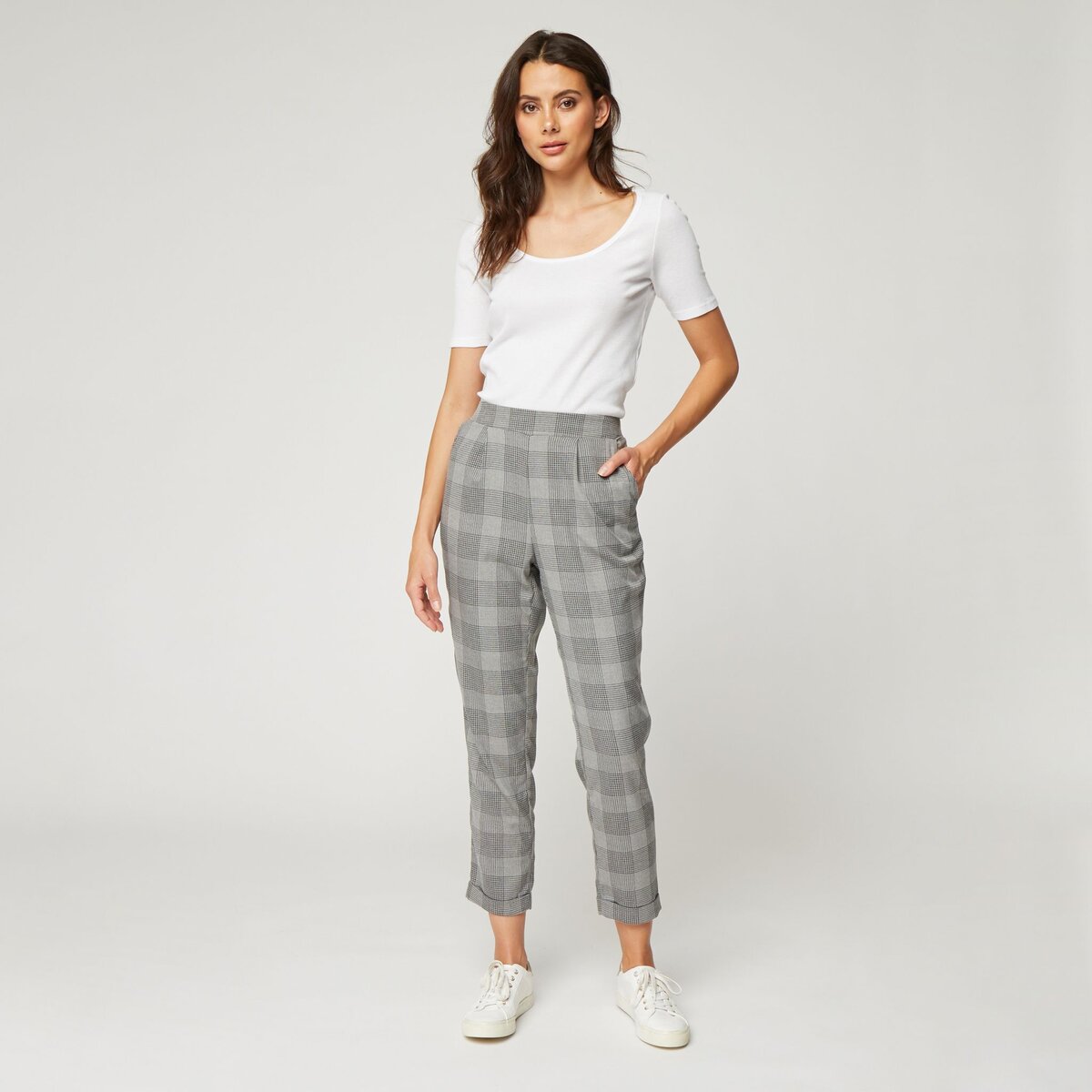 Pantalon gris a clearance carreau femme